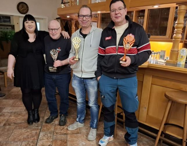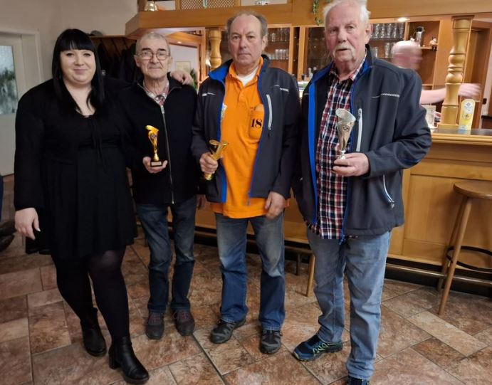 v.l.n.r. Sabine Hornung (Spielleiter), 3. Platz Herbert Hösel, 1. Platz Harald Schaarschmidt, 2. Platz Kurt Schönherr